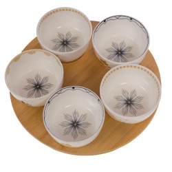 Sublimez vos moments de partage avec le coffret de 5 bols Poésie signé Amadeus. Conçus en porcelaine fine New Bone China, ces bols allient légèreté, résistance et délicatesse. Chaque pièce est ornée de motifs poétiques et raffinés, apportant une touche d’élégance à votre table. Présentés sur un plateau en bois naturel, ils offrent une mise en scène chaleureuse et harmonieuse, idéale pour les apéritifs, sauces, condiments ou petites gourmandises. Ce coffret allie esthétique et praticité, et se prête parfaitement aux moments conviviaux comme aux cadeaux raffinés. Un ensemble décoratif et fonctionnel qui enchantera vos invités à chaque utilisation.
