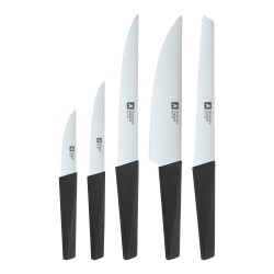 Alliez élégance, performance et praticité avec le bloc Roc de Jean Dubost, conçu pour avoir toujours les cinq couteaux indispensables à portée de main. Ce set complet comprend un couteau à découper, un couteau chef, un couteau à pain, un couteau multi-usages et un couteau office, pour répondre à toutes vos préparations culinaires.