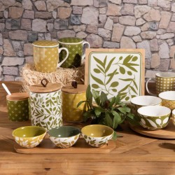 Apportez une touche d’élégance et de douceur à votre cuisine avec le pot à sel Olivia en New Bone China signé Amadeus. Conçu dans une porcelaine fine vert tendre aux motifs délicats, ce pot à sel allie raffinement et praticité au quotidien. Son couvercle en bambou naturel préserve la fraîcheur du sel, tandis que la cuillère assortie permet un dosage précis et hygiénique. Idéal pour être posé sur votre plan de travail ou table à manger, il ajoute une note chic et authentique à votre décoration. Le pot à sel Olivia est non seulement un accessoire fonctionnel, mais aussi un bel objet déco qui reflète le charme intemporel des créations Amadeus.
