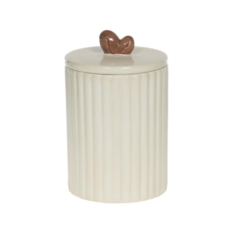 Apportez une touche douce et raffinée à votre cuisine avec cette boîte petit-déjeuner en céramique au design élégant. Son corps cannelé couleur crème, à la fois sobre et intemporel, est sublimé par un couvercle délicatement orné d’une poignée en forme de grain de café, apportant une note chaleureuse et originale. Pensée pour allier esthétisme et praticité, elle permet de conserver café, sucre ou biscuits à l’abri de l’humidité tout en décorant avec subtilité votre espace. Compacte et facile à intégrer, elle trouve naturellement sa place sur un plan de travail, une étagère ou dans un coin café, pour une ambiance conviviale et harmonieuse. Un indispensable du quotidien qui marie avec finesse fonctionnalité et charme décoratif.