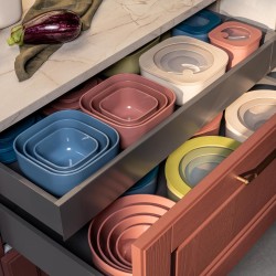 Optimisez le stockage de vos aliments avec la boîte ronde verte Store & More 1,8 L. Conçue en plastique biosourcé 100 % recyclable, elle allie durabilité, capacité généreuse et praticité au quotidien. Sa fermeture hermétique et son couvercle spécial anti-écoulement assurent une étanchéité totale, même pour les liquides ou plats volumineux. Idéale pour conserver repas, ingrédients ou restes, cette boîte est parfaite pour toute la famille.