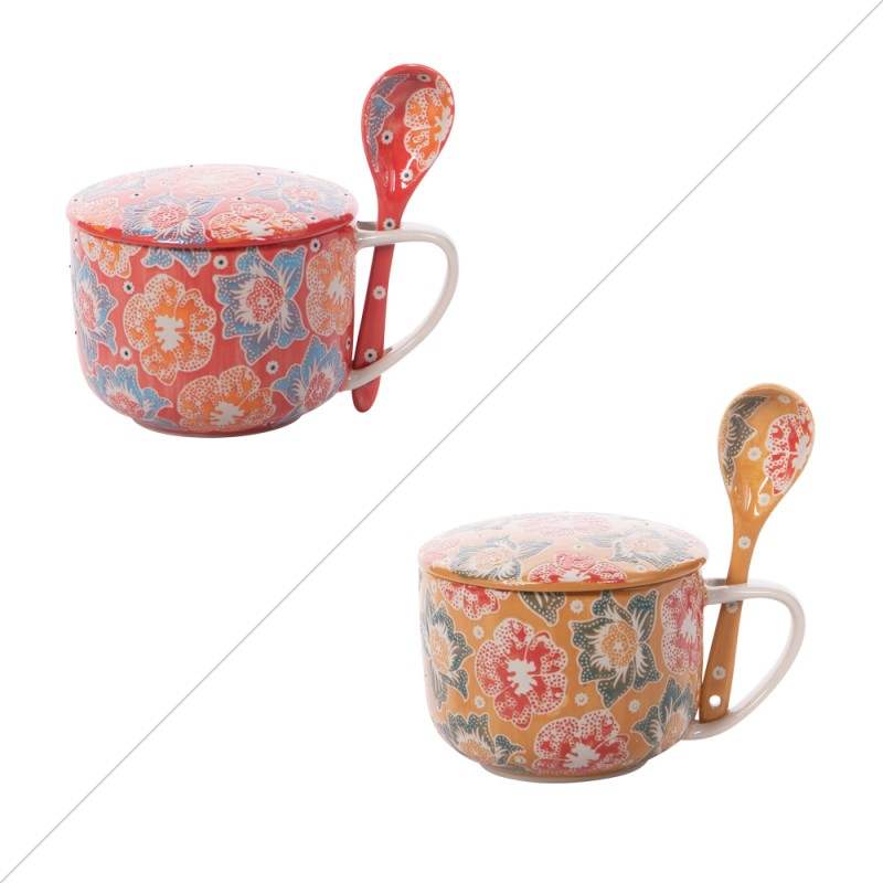 Savourez vos soupes et plats chauds avec style grâce au bol Zéphyr 55 cl, accompagné de sa cuillère assortie. Conçu en grès robuste, il arbore les motifs floraux caractéristiques de la collection, dans des tons rouge profond et moutarde dorée, pour un rendu à la fois chaleureux et élégant.