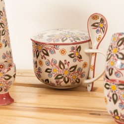 Découvrez le Bol à soupe avec cuillère Siena 55 cl, un véritable écrin de charme et d’élégance signé Table Passion. Issu de la gamme Siena, ce bol en grès allie robustesse et raffinement grâce à sa fabrication artisanale de qualité. Son design unique, sublimé par un motif floral coloré aux teintes chaleureuses de bleu, jaune et rouge, apporte une touche d’authenticité et de convivialité à votre table. Le bol est accompagné d’une cuillère assortie, également en grès, parfaitement adaptée pour savourer vos soupes, potages ou plats mijotés. Avec une capacité généreuse de 55 cl, il est idéal pour vos repas quotidiens ou vos moments de détente gourmande.