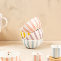 Apportez à votre table une touche de soleil avec le bol 12 cm de la gamme Bandol signé Table Passion. Inspiré par la douceur des beaux jours et l’esprit méditerranéen, ce bol séduit par ses délicates rayures pastel aux teintes lumineuses, sublimées de petits motifs floraux qui insufflent fraîcheur et légèreté à chaque instant gourmand. Réalisé en porcelaine, il allie finesse, résistance et élégance au quotidien. Idéal pour le petit-déjeuner, un dessert ou une pause gourmande, il s’intègre harmonieusement à la collection Bandol — composée également de mugs, tasses et sets apéritifs — pour créer une table conviviale, lumineuse et pleine de charme. (lot de 4)