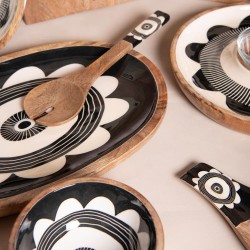 Exotique et contemporaine, la collection Zanzibar de Table Passion célèbre le charme naturel du bois de manguier, sublimé par des motifs graphiques noir et blanc au style unique. Les articles de la collection Zanzibar se distinguent par leur fabrication artisanale et leurs finitions soignées, parfaits pour recevoir avec style ou apporter une note raffinée à votre quotidien.