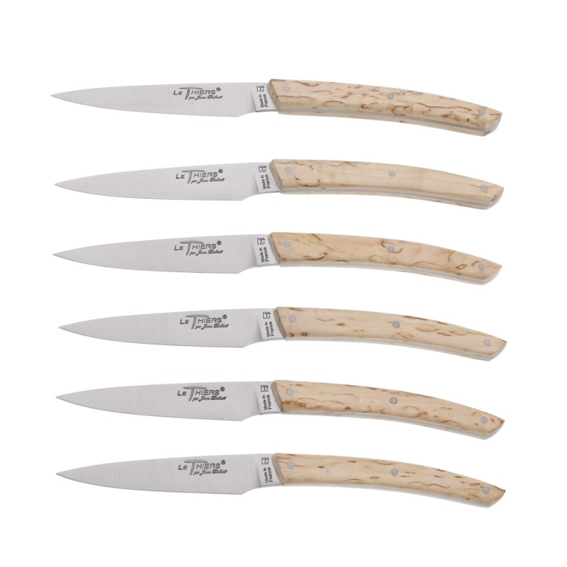Dotés d’un design raffiné en coloris beige, ces couteaux apportent une touche chic et intemporelle à votre table ou votre cuisine. Inspirés de la tradition coutelière de Thiers, ils combinent robustesse et légèreté, pour une utilisation agréable au quotidien.