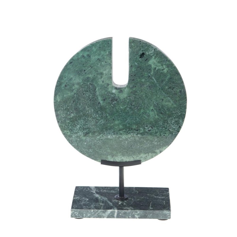 Apportez une note chic et naturelle à votre intérieur avec cette décoration à poser en marbre vert émeraude. Sa forme ronde et ajourée, posée sur un socle en métal noir, crée un équilibre parfait entre modernité et authenticité. Idéale pour sublimer une étagère, un bureau ou une console, elle invite à la sérénité et à l'élégance au quotidien.