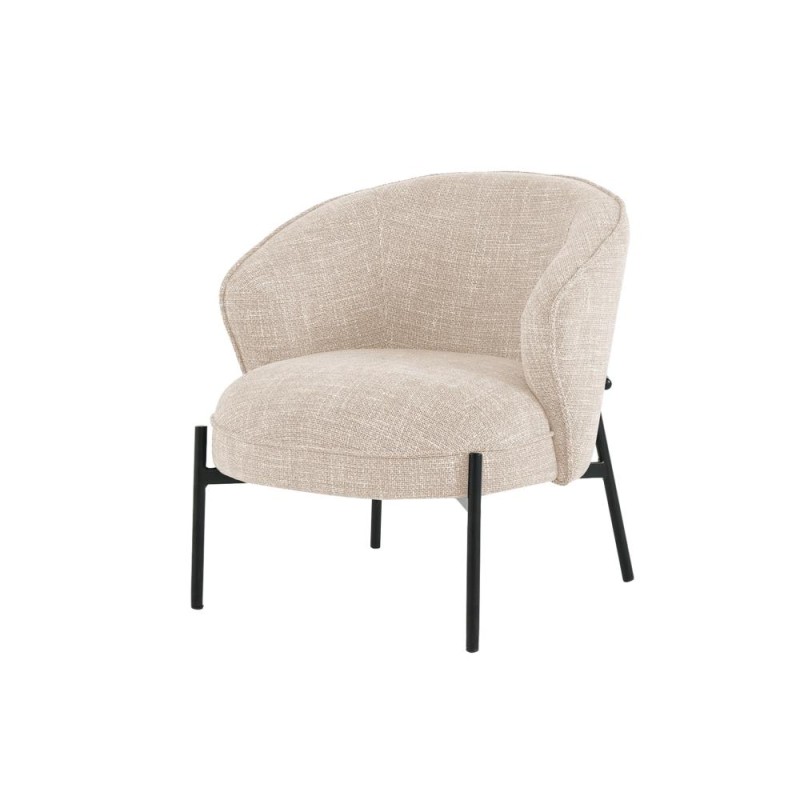 Adoptez le fauteuil Carl, une pièce qui combine design épuré, douceur des formes et confort absolu. Son dossier arrondi et ses accoudoirs intégrés créent une silhouette harmonieuse et contemporaine, idéale pour apporter une touche chic à votre salon, votre chambre ou un coin lecture. Revêtu d’un tissu beige texturé, lumineux et chaleureux, le fauteuil Carl diffuse une ambiance apaisante et raffinée. Son assise généreusement rembourrée garantit un excellent confort, tandis que son piètement en métal noir lui offre stabilité et élégance. Avec ses dimensions 71 × 77 × 71 cm, il s’intègre facilement dans tous les intérieurs, même les plus compacts, tout en affirmant un style moderne et cosy.