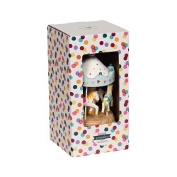 Apportez une touche féerique à votre intérieur avec ce carrousel musical compact signé Amadeus Les Petits. Avec ses dimensions pratiques (Ø 11 x H 21 cm), il trouve sa place sur une étagère, une table ou une commode. Conçu en MDF et bois massif, avec des finitions en PP, il allie robustesse et légèreté (390 g). Son design délicatement peint, orné de pois et de fanions, met en scène trois chevaux mobiles qui tournent au rythme de la mélodie. Un petit bijou décoratif qui ravira petits et grands, parfait pour offrir ou pour embellir votre maison avec charme et poésie.
