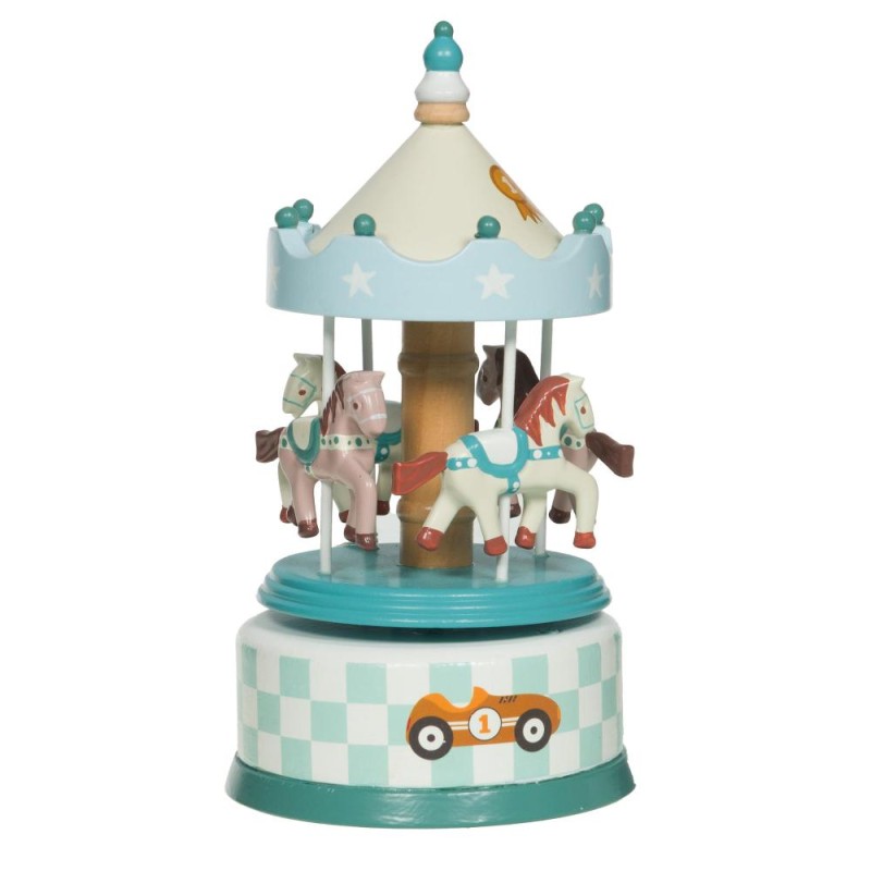 Le carrousel musical “Rallye Voiture” de la marque Amadeus Les Petits apporte une touche de magie et de musique dans la chambre de votre enfant. Conçu en MDF, bois massif et PP, il allie robustesse et légèreté pour un usage sûr et durable. Avec ses motifs colorés de voitures et de chevaux, il stimule l’imagination des petits tout en décorant joliment la pièce. Son format compact (Ø 11 x H 21 cm) et son poids léger de 390 g permettent de le placer facilement sur une étagère ou une table de chevet. Le mécanisme musical simple diffuse une douce mélodie qui émerveillera et apaisera votre enfant. Sa peinture de qualité offre des couleurs vives et durables pour une finition soignée. Ce carrousel est un cadeau idéal pour éveiller les sens des enfants tout en ajoutant une décoration charmante et ludique à leur univers.