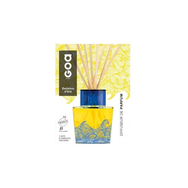 Laissez-vous emporter par la fraîcheur élégante du diffuseur Goa Embruns d’Iris, une fragrance raffinée qui évoque la brise marine caressant les rivages fleuris. Son parfum délicat mêle notes d’embruns, de fleurs blanches et d’iris poudré, pour une atmosphère à la fois pure, apaisante et sophistiquée. Conçu pour parfumer votre intérieur pendant environ 3 mois, ce goatier décoratif diffuse en continu ses effluves grâce à ses bâtonnets en rotin, tout en apportant une touche élégante à votre décoration. Une senteur d’exception, entre fraîcheur océanique et douceur florale, qui transforme chaque pièce en un havre de sérénité.