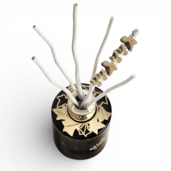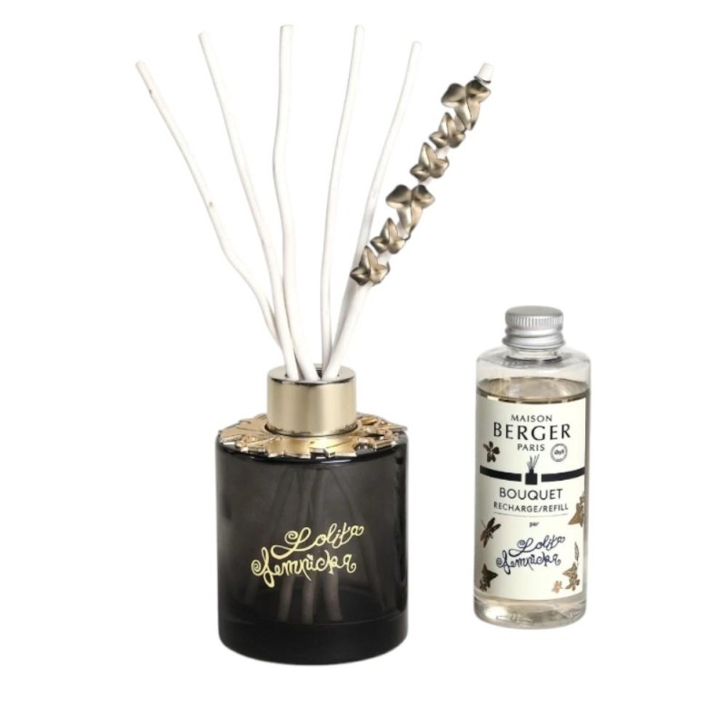 Élégant et envoûtant, le Bouquet Bijou parfumé Lolita Lempicka Black Edition de Maison Berger est une véritable pièce décorative qui sublime votre intérieur tout en le parfumant délicatement. Son flacon noir translucide, rehaussé de détails dorés raffinés, allie mystère et sophistication. Le bijou plat en forme de feuilles de lierre, symbole emblématique de la maison Lolita Lempicka, enlace délicatement les brins en saule 100 % végétal pour une diffusion naturelle et continue du parfum. Inspiré de l’iconique Mon Premier Parfum, ce bouquet diffuse une fragrance gourmande et sensuelle. Les notes sucrées de fleur de réglisse se mêlent à la fraîcheur végétale des feuilles de violette, avant de s’adoucir dans un sillage poudré de fève tonka. Une composition féminine et romantique qui crée une atmosphère chaleureuse et féerique dans votre maison. À la fois objet parfumant et bijou décoratif, ce bouquet est idéal pour offrir ou se faire plaisir. Il est également disponible en version parme et transparente pour varier les ambiances selon vos envies.
