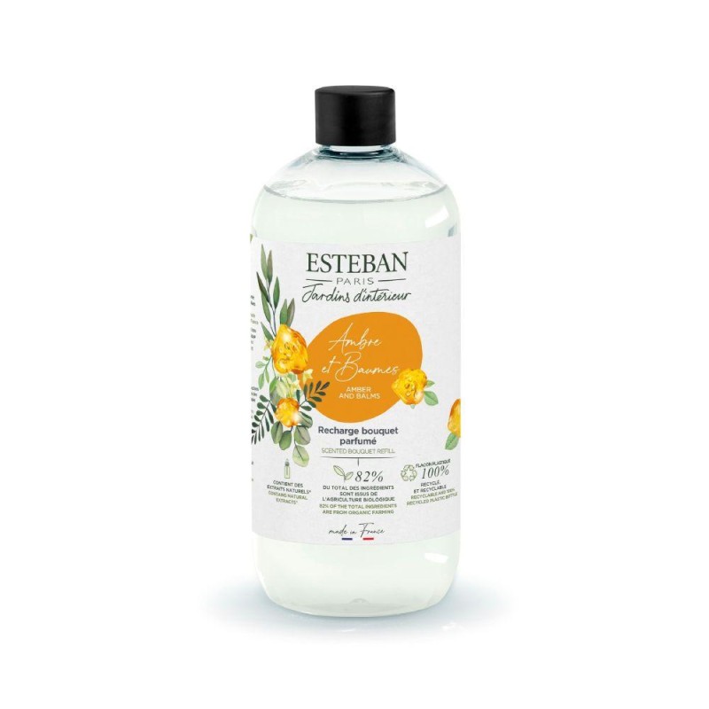 Prolongez l’expérience olfactive de votre intérieur avec la recharge pour bouquet parfumé Ambre & Baumes. Conçue pour alimenter votre diffuseur à tiges, elle diffuse en continu un parfum enveloppant et raffiné grâce à une diffusion à froid naturelle et permanente. Cette fragrance ambrée et chaleureuse révèle de délicates notes poudrées d’amande et d’héliotrope, qui se mêlent harmonieusement à un fond profond et réconfortant de baumes, de bois et de vanille. Une composition élégante qui crée une atmosphère douce et apaisante dans votre maison. Formulée avec 82% d’ingrédients issus de l’agriculture biologique, cette recharge contient de l’alcool végétal biologique et des extraits naturels, pour un parfum respectueux de votre intérieur et de l’environnement. Sa formule est également vegan. Pensée dans une démarche plus responsable, la recharge est présentée dans un flacon de 500 ml fabriqué en plastique 100 % recyclé. Elle permet de profiter d’une diffusion parfumée pendant environ 2 à 6 mois, selon la taille de la pièce et le nombre de tiges utilisées.