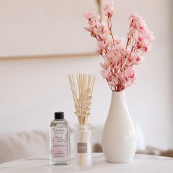 Apportez une touche de douceur et d’élégance à votre intérieur avec le bouquet parfumé Fleur de Cerisier d’Esteban. Son parfum floral et délicatement fruité évoque la fraîcheur du printemps et la beauté des cerisiers en fleurs, pour une atmosphère apaisante et raffinée. Son design élégant s’intègre harmonieusement dans toutes les pièces de la maison. Les tiges en bois diffusent progressivement le parfum pour une ambiance subtile et continue. Conçu dans une démarche responsable, ce bouquet est rechargeable à l’infini : vous pouvez renouveler le parfum et les tiges afin de prolonger l’expérience tout en adoptant un geste plus économique et durable.