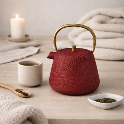 Apportez charme et authenticité à vos moments de dégustation avec cette théière en fonte rouge signée Table Passion. Élégante et chaleureuse, elle séduit par son design raffiné et ses finitions soignées qui subliment chaque pause thé. Réalisée en fonte robuste, elle garantit une excellente conservation de la chaleur pour maintenir vos infusions à la température idéale plus longtemps. Son décor rouge est rehaussé de lignes pailletées délicates, apportant une touche lumineuse et sophistiquée qui attire le regard. Dotée d’une anse de couleur dorée, elle allie confort de prise en main et élégance précieuse, pour un service à la fois pratique et distingué. Sa capacité de 1 litre en fait l’alliée idéale pour partager des instants conviviaux en famille ou entre amis. Une théière décorative et fonctionnelle, pensée pour sublimer l’art du thé avec style, tradition et modernité.