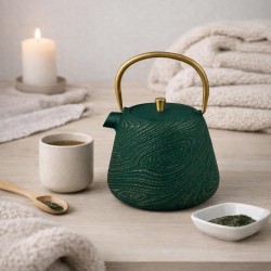 Apportez une touche d’élégance naturelle à vos moments de dégustation avec cette théière en fonte verte signée Table Passion. Raffinée et intemporelle, elle séduit par son design soigné et ses finitions délicates qui mettent en valeur chaque pause thé. Conçue en fonte robuste, elle assure une excellente conservation de la chaleur afin de maintenir vos infusions à la température idéale plus longtemps. Son coloris vert profond est sublimé par de fines lignes pailletées, qui lui confèrent un éclat subtil et raffiné. Sa anse de couleur dorée apporte une touche chic et élégante tout en garantissant une prise en main confortable et sécurisée. Avec sa capacité de 1 litre, elle est idéale pour partager des instants conviviaux autour d’un thé en famille ou entre amis. Une théière à la fois décorative et fonctionnelle, pensée pour allier tradition, modernité et raffinement au quotidien.
