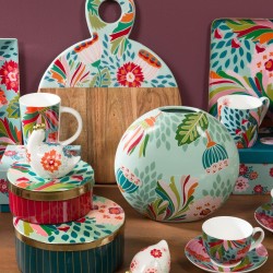 Apportez une touche d'originalité à votre cuisine avec cette planche en bois d'acacia au design unique. Sa surface naturelle se mêle à un décor floral coloré sur le manche, pour allier praticité et esthétique. Parfaite pour découper ou présenter vos aliments avec élégance, elle invite à la convivialité et à la créativité culinaire.
