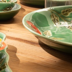 La collection Pomodoro de Table Passion met en avant la générosité des saveurs méditerranéennes. Ses motifs de tomates rouges et jaunes, contrastant avec un vert profond, insufflent chaleur et gourmandise à la table. Réalisée en grès résistant, elle se décline en plats variés, parfaits pour partager apéritifs et repas conviviaux dans un esprit authentique.