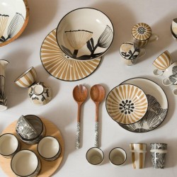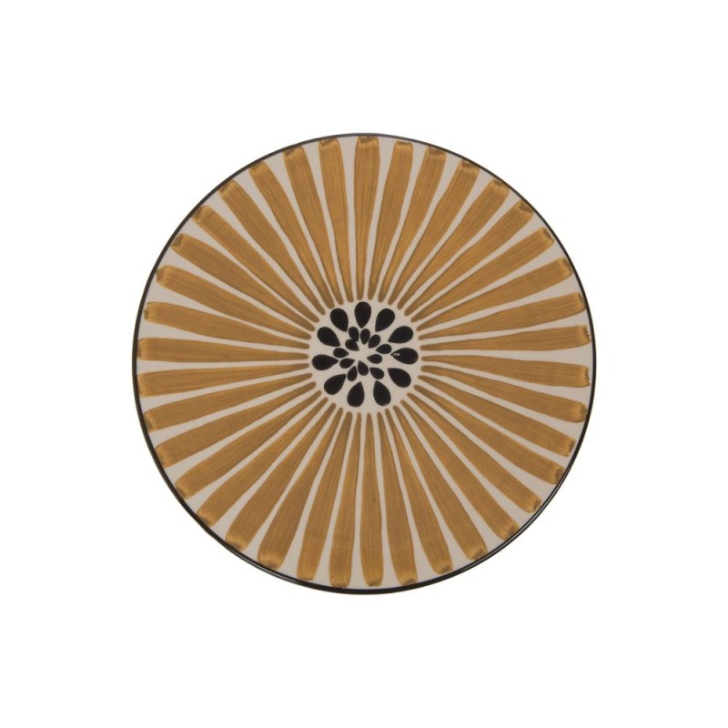 Apportez une touche d'élégance et d'originalité à votre table avec ce plat rond en grès décoré d'un motif graphique ocre et noir. Parfait pour servir vos plats avec style, il allie robustesse et design artisanal pour sublimer vos repas au quotidien ou lors d'occasions spéciales.