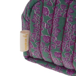 Laissez-vous séduire par la pochette Tamar grand modèle, un accessoire aussi élégant que fonctionnel. Son tissu en coton matelassé à la main met en valeur un motif floral raffiné aux tons vert émeraude et violet, pour une touche d’exotisme chic et intemporelle. Spacieuse et légère, elle accueille aisément vos indispensables du quotidien : maquillage, produits de beauté, accessoires ou petits objets de voyage. Sa fermeture zippée dorée assure une sécurité optimale, tandis que sa doublure intérieure imprimée témoigne du soin apporté aux finitions. Souple et pratique, la pochette Tamar se glisse facilement dans un sac ou une valise, ou se porte seule pour un look bohème et coloré.