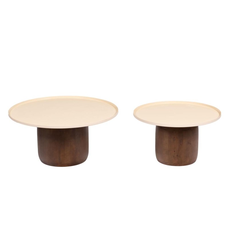 Apportez une touche contemporaine et chaleureuse à votre intérieur avec ces tables basses au design épuré. Vendues à l’unité, elles associent élégamment un plateau clair lumineux à un piétement cylindrique en bois foncé, créant un contraste moderne et raffiné. Leur conception en deux hauteurs complémentaires permet de jouer sur les volumes et d’optimiser l’espace, tout en favorisant une mise en scène harmonieuse dans votre salon. Idéales en duo pour un effet tendance ou utilisées séparément selon vos besoins. Avec leurs dimensions pratiques (Ø 61 cm, H 37 cm), ces tables basses s’intègrent facilement dans tous les intérieurs et offrent un espace fonctionnel pour vos moments de détente. Un duo modulable et esthétique, parfait pour allier style et praticité au quotidien.