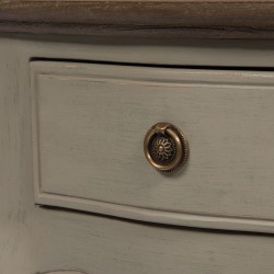 Tombez sans hésiter sous le charme du ravissant chevet maddy, fabriqué en bois de bayur, en placage de bois mindi et en panneaux de fibres à moyenne densité. ses superbes courbes aux accents baroques, sa délicate patine et le magnifique détail de sa poignée dorée en font une pièce d'un raffinement rare.