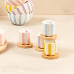 La collection Bandol de Table Passion évoque la douceur des beaux jours et l’esprit méditerranéen. Ses rayures pastel aux teintes lumineuses, ponctuées de petits motifs floraux, apportent fraîcheur et légèreté à la table. Réalisée en porcelaine, elle se décline en bols, mugs, tasses et sets apéritifs, parfaits pour partager des instants simples et conviviaux en toute élégance.