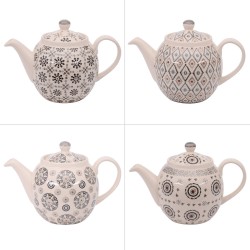 Cette théière d'un litre, équipée d'un filtre, est conçue pour sublimer votre table grâce à son design distinctif et intemporel. Fabriquée en grès, un matériau reconnu pour sa durabilité et sa capacité à résister à la chaleur, elle combine harmonieusement qualité et élégance. (1 modèle aléatoire parmi les 2 décors assortis. Si vous avez une préférence pour un décor, veuillez nous envoyer un message après votre commande, nous ferons de notre mieux afin de vous satisfaire.