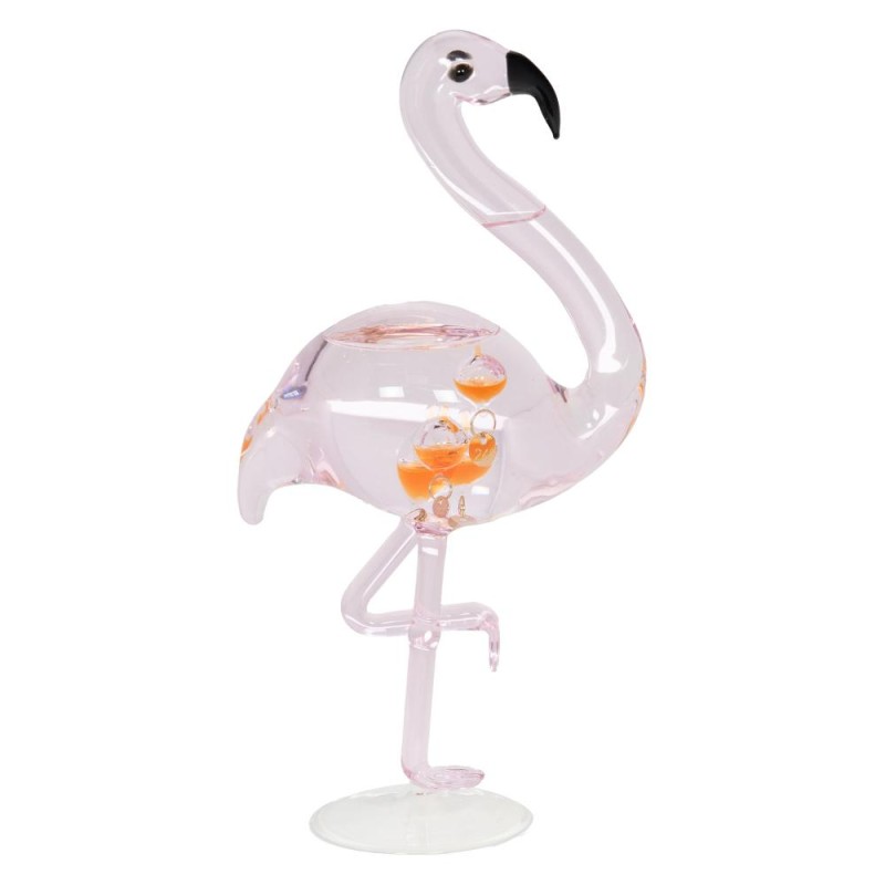 Apportez une note originale et poétique à votre décoration avec ce thermomètre de Galilée en forme de flamant. Alliant élégance et curiosité scientifique, il séduit par son design en verre transparent et ses petites sphères colorées qui réagissent aux variations de température. À la fois décoratif et ludique, il trouve facilement sa place sur une étagère, un bureau ou un rebord de fenêtre. Véritable objet de conversation, il apporte une touche légère, raffinée et pleine de charme à votre intérieur.