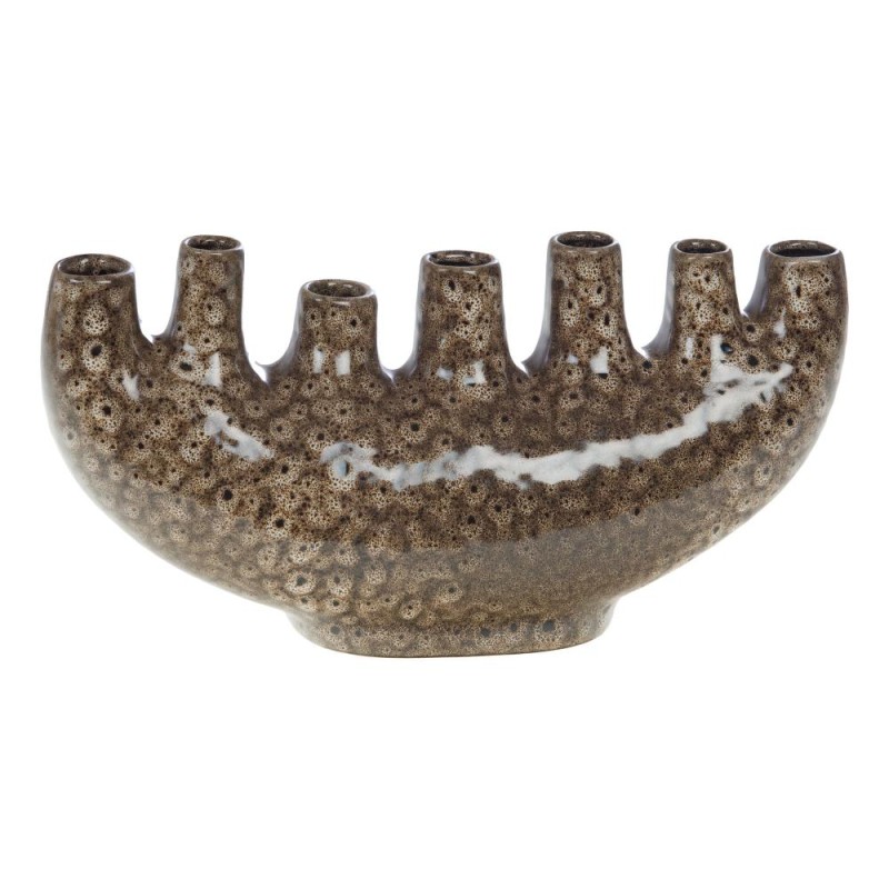 Apportez une touche d'originalité à votre intérieur avec ce vase en céramique au design unique. Ses multiples ouvertures permettent de créer des compositions florales variées, tandis que sa finition texturée et ses tons naturels s'intègrent parfaitement dans une ambiance chaleureuse et contemporaine.