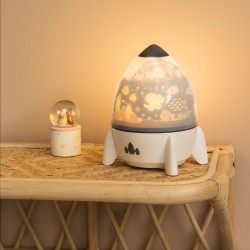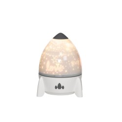 Apportez une touche de magie et de douceur à la chambre de votre enfant avec ce projecteur musical en forme de fusée. Conçu pour apaiser et émerveiller, il diffuse une lumière tamisée accompagnée de mélodies relaxantes, idéales pour instaurer un rituel du coucher rassurant. Grâce à ses disques interchangeables, il projette différents univers féeriques (espace, animaux, océan, fêtes…) qui stimulent l’imagination et invitent au voyage. Son design ludique et moderne s’intègre parfaitement dans une chambre d’enfant, tout en devenant un véritable objet de décoration. Compact et léger, il se place facilement sur une table de chevet ou une étagère. Facile d’utilisation, il est également équipé d’une télécommande pour ajuster les modes d’éclairage, les musiques et les projections en toute simplicité. Un compagnon idéal pour accompagner les nuits des plus petits, entre rêverie et sérénité.