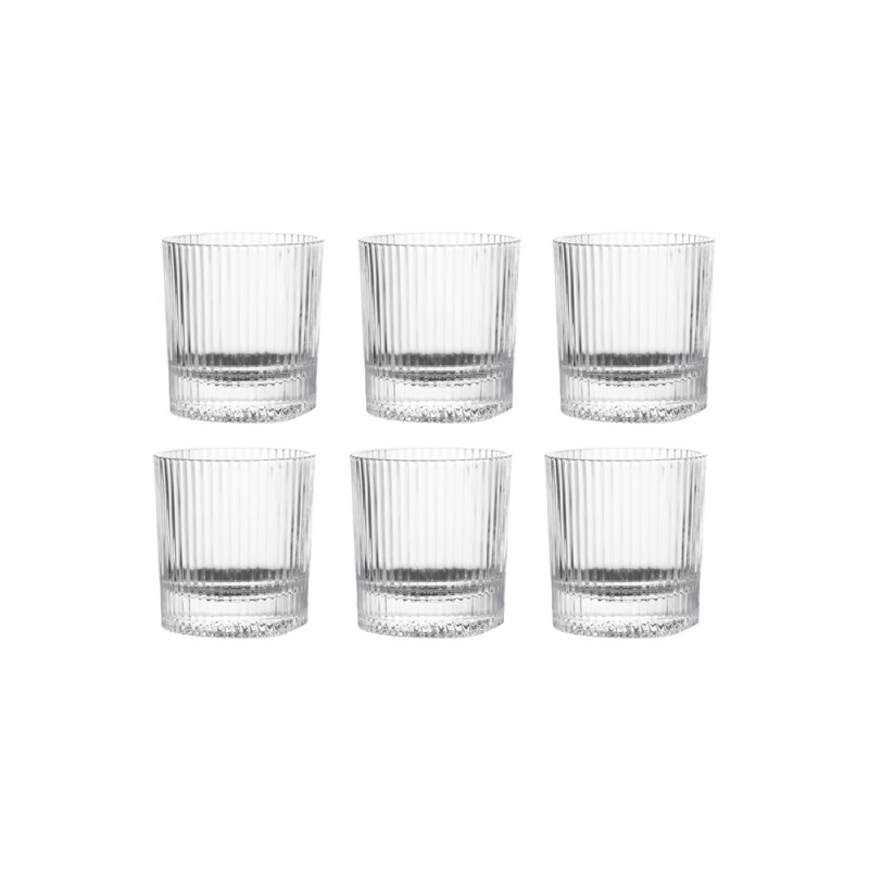 Avec leur contenance idéale de 30 cl, ils sont parfaits pour servir vos boissons préférées, qu'il s'agisse d'eau, de jus, de cocktails ou de sodas. Leur texture extérieure cannelée offre une prise en main confortable tout en sublimant la lumière pour un effet visuel unique.